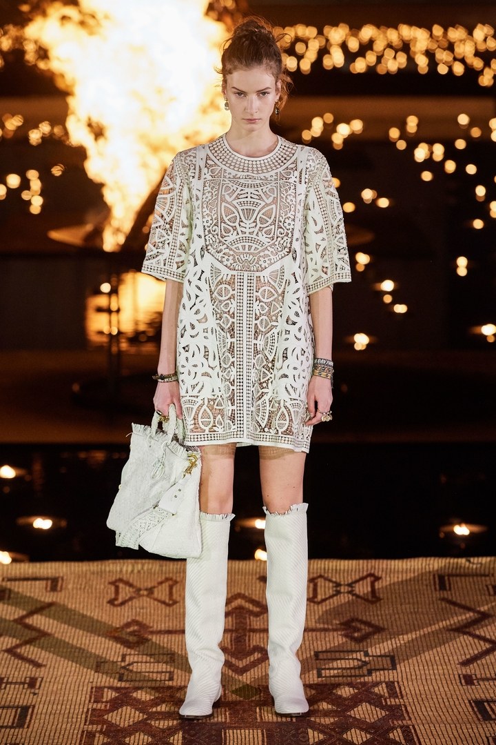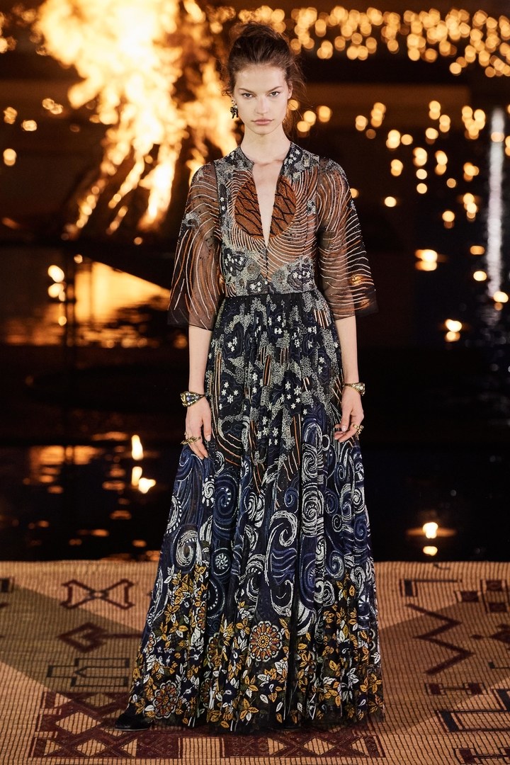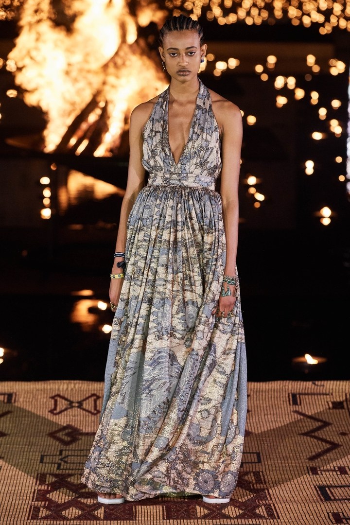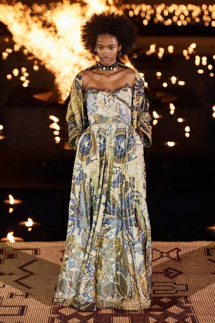 Loin de l’appropriation culturelle; l’idée était pour la directrice artistique de la maison de faire rayonner la culture africaine le plus loin possible et d’y apporter de la visibilité. Quoi de mieux donc que le Maroc et Marrakech pour présenter ce défilé : un pays qui fait le pont entre l’Afrique et l’occident.